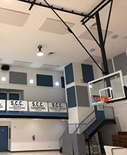 Seeking a solution to the sound problem, Elfers contacted Sonic Shield, a distributor of REVRB™ Acoustical Panels: Traditional Series. Sonic Shield successfully determined the time the noise was taking to stop echoing, also called the reverberation time, using an algorithm, which factors in the dimensions of the gymnasium and the materials on the floor, walls, and ceiling throughout the space. With the reverberation time calculated, Sonic Shield was able to figure out the square-footage of REVRB™ Acoustical Panels that needed to be installed to reduce the time. In the end, almost 3,000 square-feet of REVRB™ Acoustical Panels were installed on the ceiling and walls throughout the gymnasium. The reduction of sound was phenomenal, the Principal of the Elfers Christian School was, “definitely pleased with the final result.”